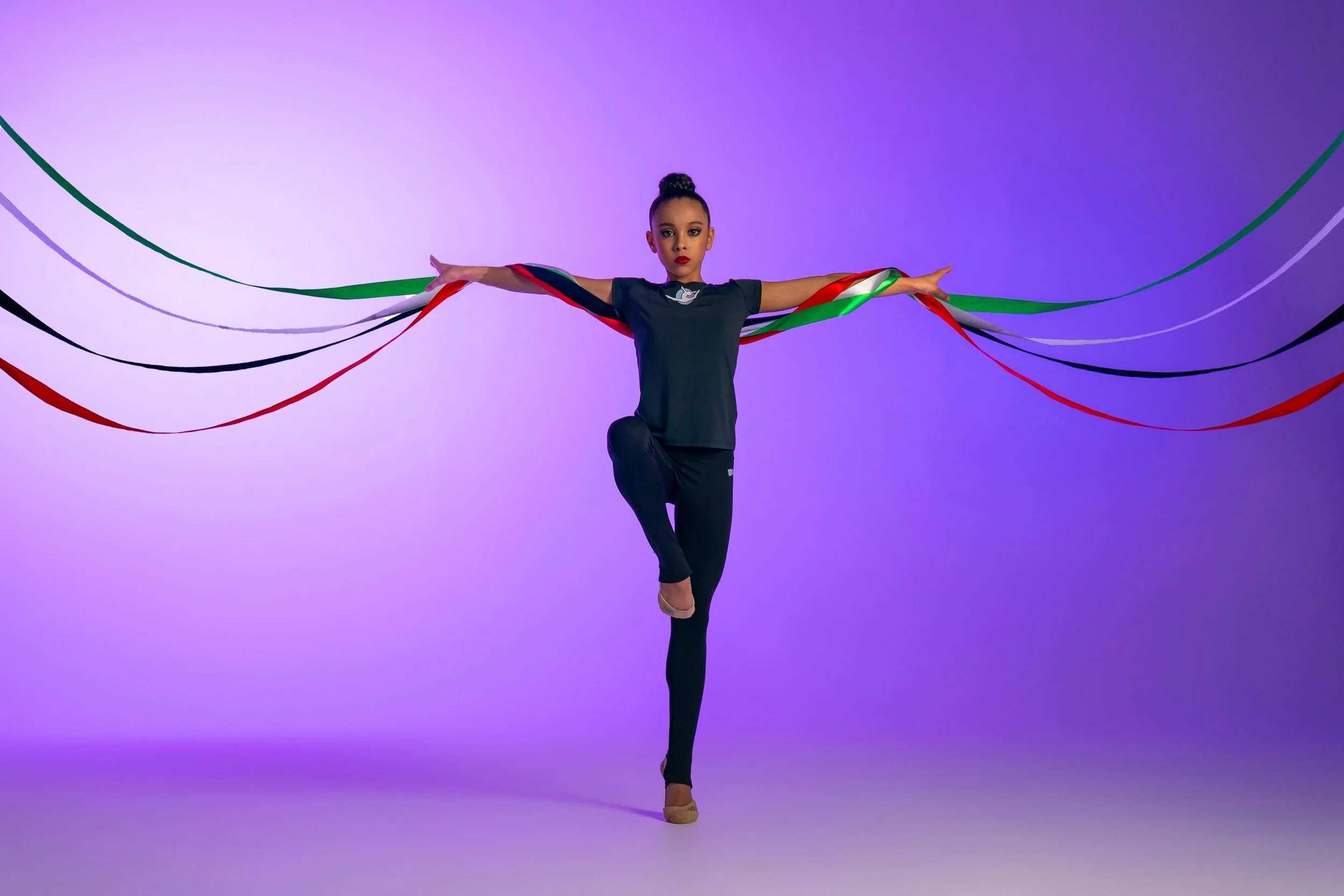 Our program is designed to gradually build the skills, strength, and artistry required for high-level rhythmic gymnastics.