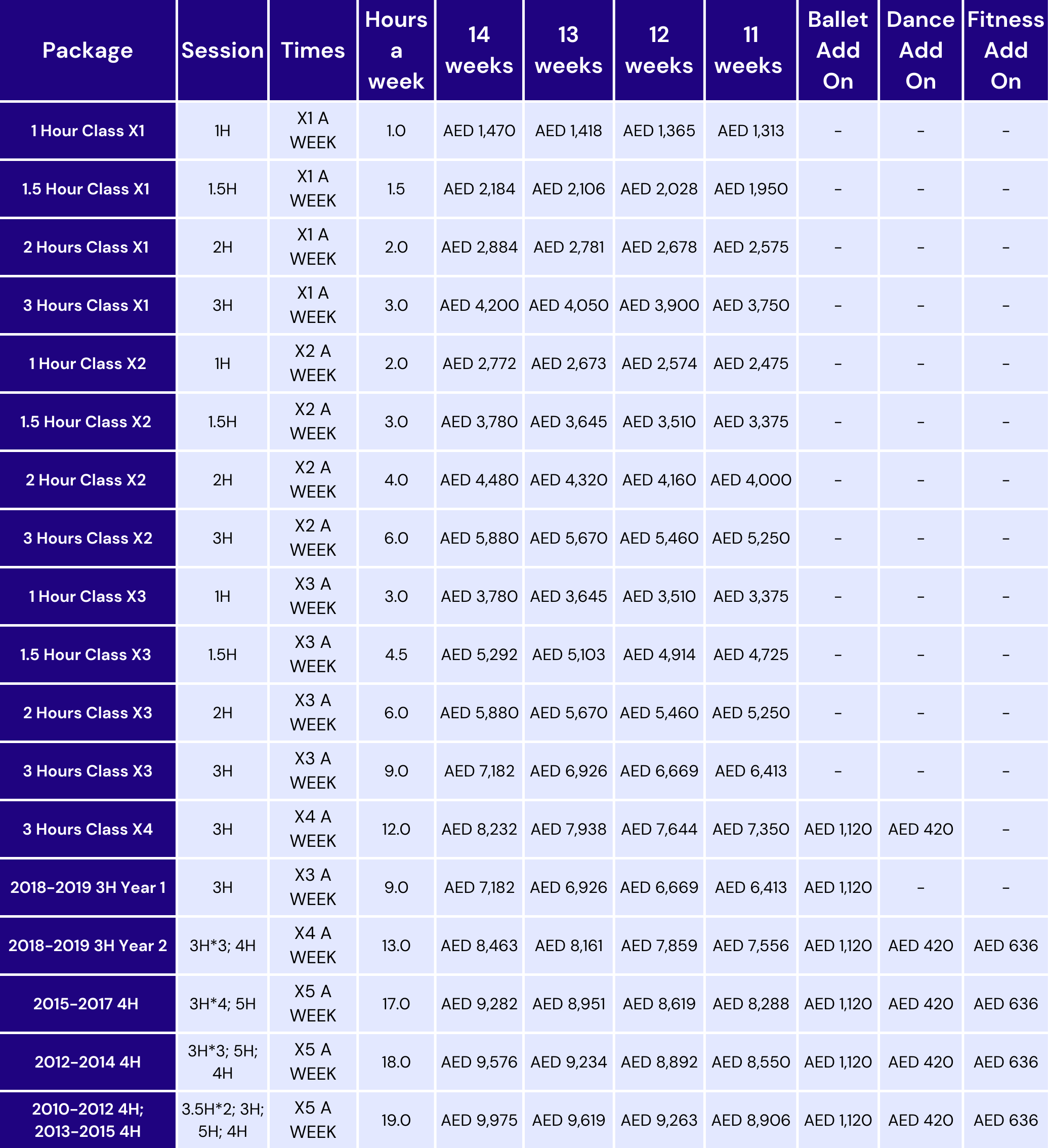 The 11-week package includes 2 make-up classes.